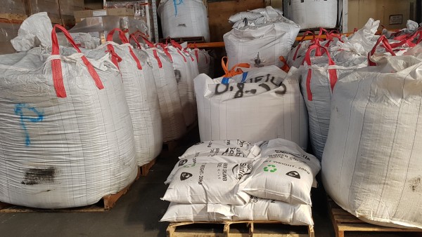 In this case only 4 bags of 500kg were used to give a shallow coat. The amount can be varied depending on the desired surface characteristics. Delivery can also be in bulk by truck.